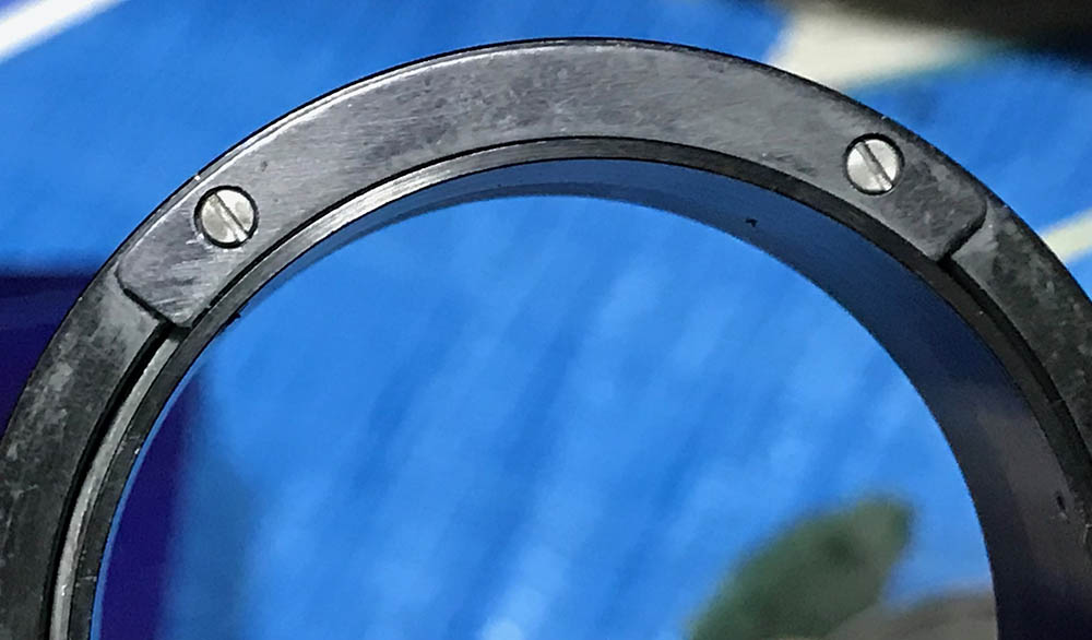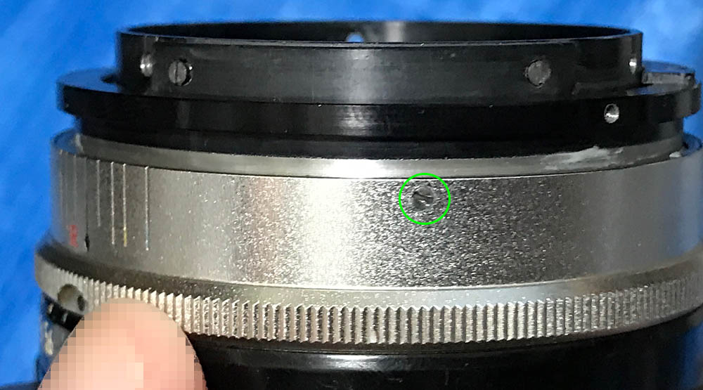 Compared to later versions of this lens, the screws for the sleeve are hidden neatly underneath the focusing ring. Carefully remove them so you will not damage them.