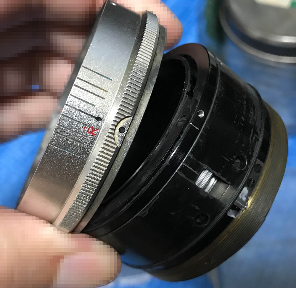 The lens barrel is simple to service, it’s similar to earlier F-mount Nikkors in terms of construction but there are a few differences specially at its base. It has a thin lacquer coat so you shouldn’t clean the barrel with alcohol, that’s going to strip the lacquer coating and dissolve the paint. This is a rare lens, I would recommend sending yours to a professional to service instead. That’s the best advice I can give to a beginner. You do not want to ruin a valuable lens in the name of practice.
