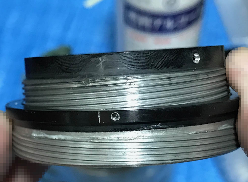 Carefully separate the helicoids, don’t forget to mark where they separated. If you haven’t seen my article on how to work with helicoids then please go and read it first before you do this. Many people get stuck here just trying to guess how the helicoids should mate, you don’t want this to happen to you.
