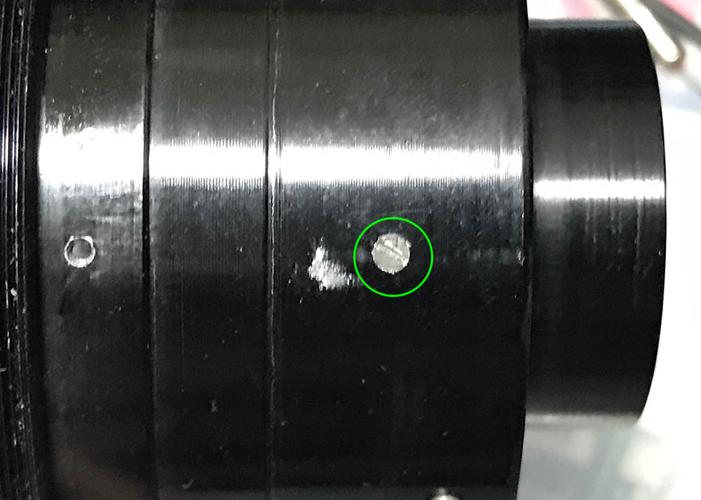 Extend the barrel a bit by turning the central helicoid to access these. These secure the objective to the lens barrel.