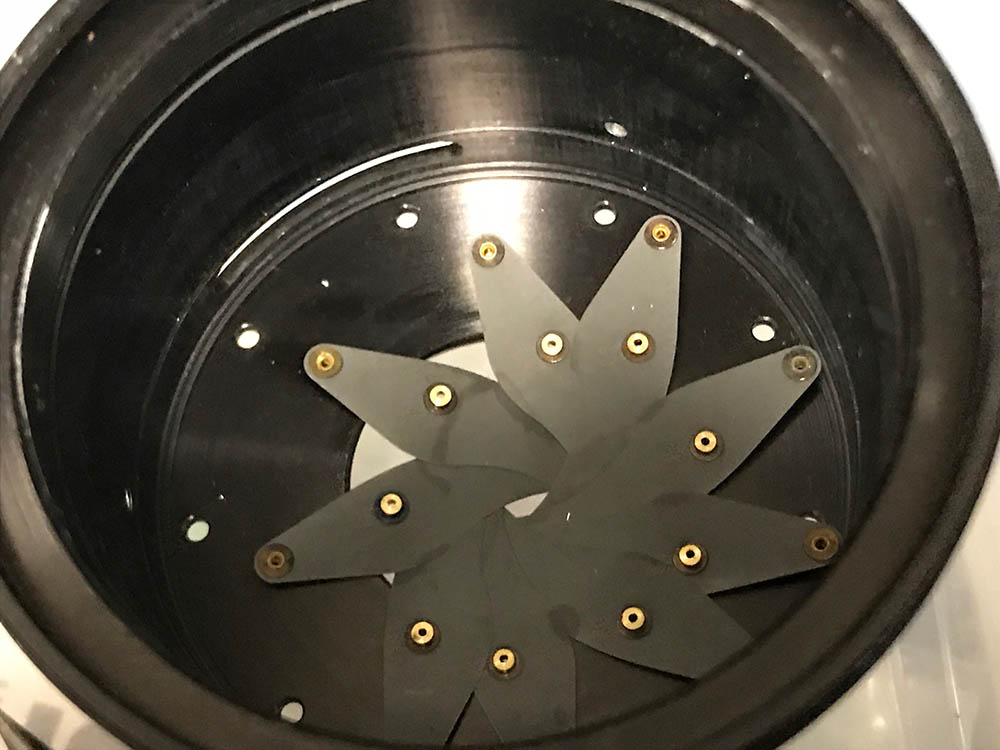The iris blades can now be removed. These are more delicate than the usual ones as they are thin. You can easily damage the pegs, too.