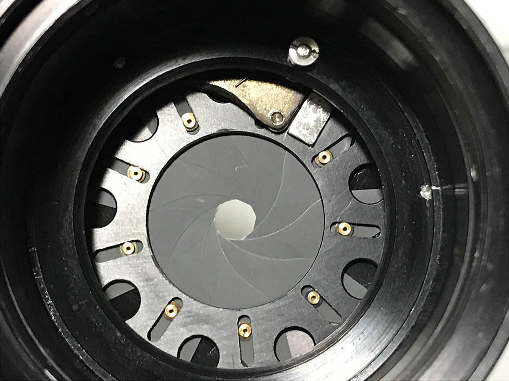 The iris mechanism is what makes this lens special. It has a 9-bladed iris, it’s intricate and it’s difficult to construct, you’ll soon see why. Those of you who have little or not experience with lens repair should not work on this, this is a very delicate mechanism that requires an experienced repairer to fix.