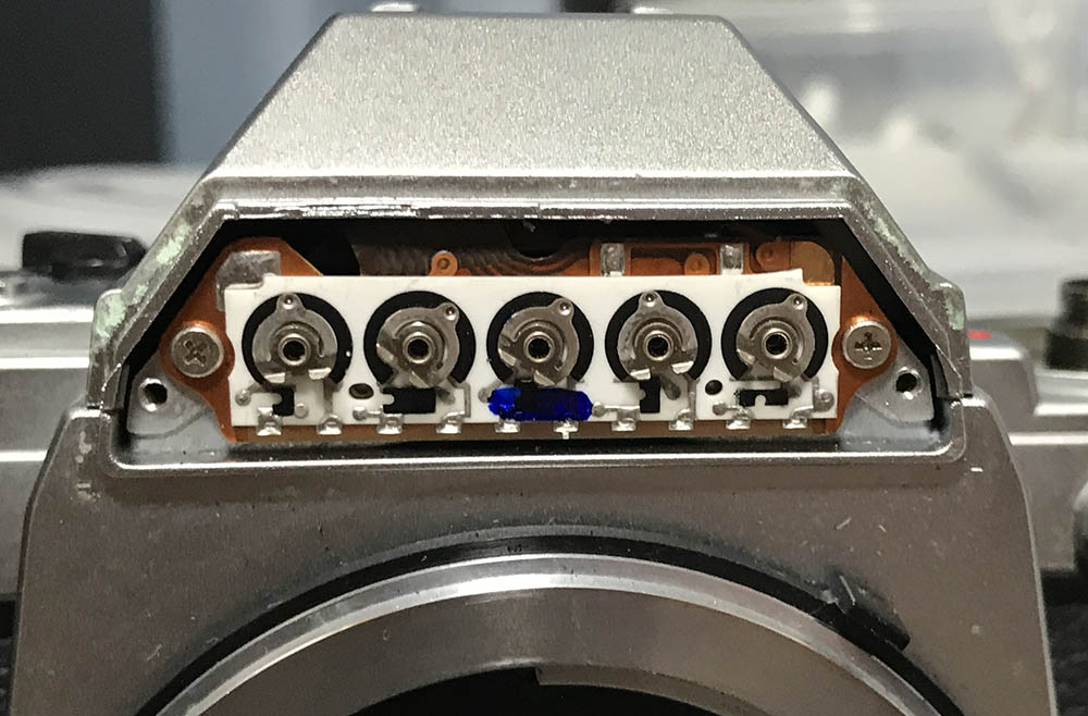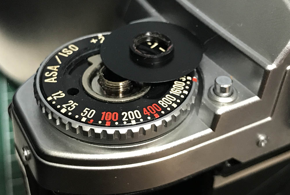 The contacts for the ISO-selector should also be cleaned carefully like what you just did with its brush. Fungus, dirt and oil can cause it to be faulty and only wiping it clean will solve it. If it’s dirty it can cause a faulty connection which results in erratic or faulty readings.