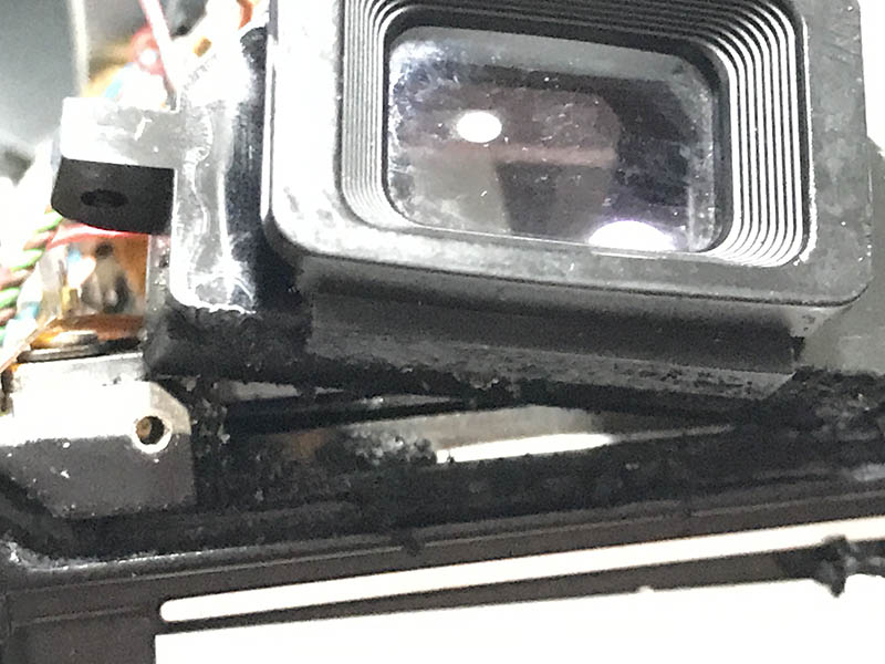 It took me under an hour to clean this camera. Lubricating the mechanisms at the bottom of the camera helped make the operation smooth. It operates so smooth now that I don’t feel any irregularities when I cock the shutter. It is important to clean the prism, too. You should be careful with cleaning the prism so you won’t damage the display, it’s simply printed-on. Crumpling it will make it look ugly, something that will haunt you each time you use the camera. This is not something for an amateur to work on, it’s best to send it to a real repairman. Again, it’s unwise to purchase a faulty low-end camera. It will cost you more to repair it. Even if you got it for cheap or free it’s not worthwhile repairing these unless you just want to fiddle-around and learn something.