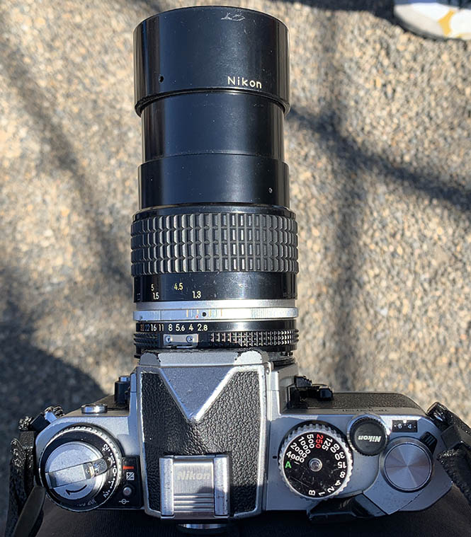 A longer lens such as the Nikkor 135mm f/2.8 Ai-S will make your setup a bit forward-heavy. This isn’t much of a problem so long as you hold your setup with both hands, adding stability.