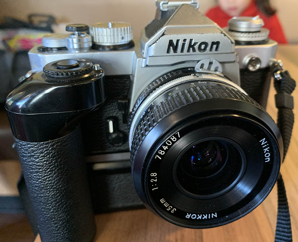 The Nikon MD-12 is a useful accessory, not only does it enable the camera to shoot faster and advance the frame automatically it also makes your setup a lot more stable. People with larger hands will benefit from it, too. Mounting a small lens with it such as the New-Nikkor 35mm f/2.8 is great, it makes the setup much-lighter and you can shoot with it all-day without straining your neck, that is if you don’t mount the Nikon MD-12 with it.