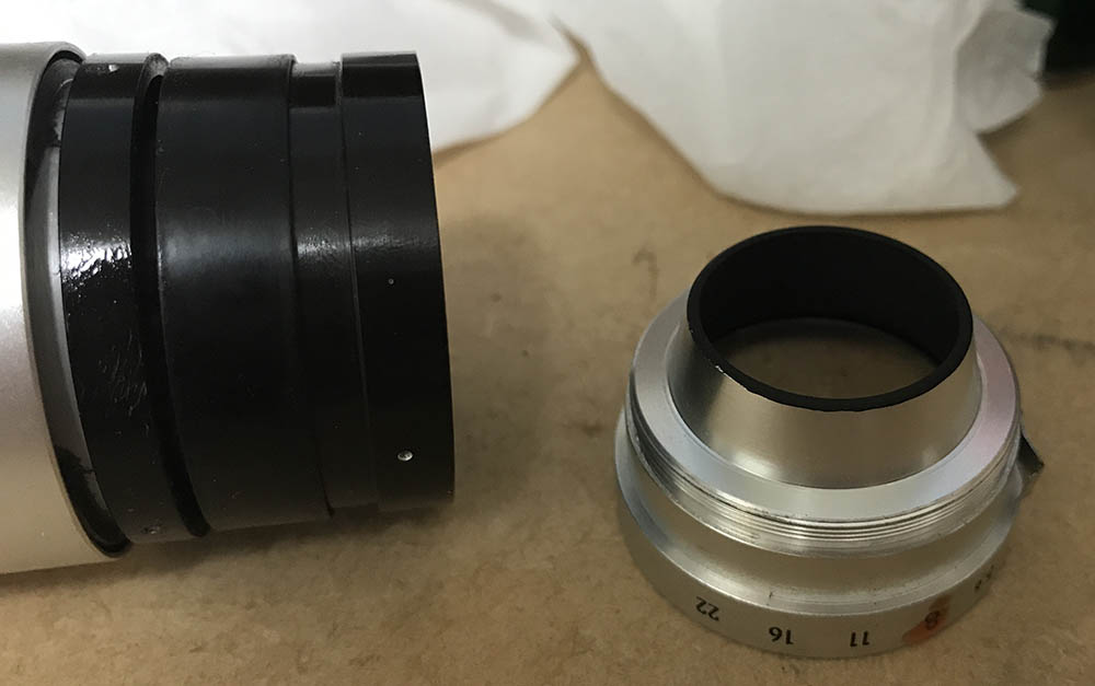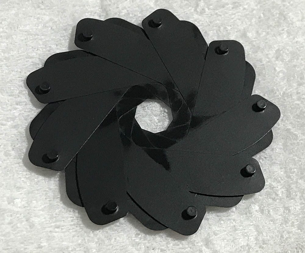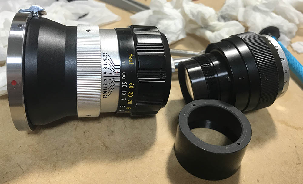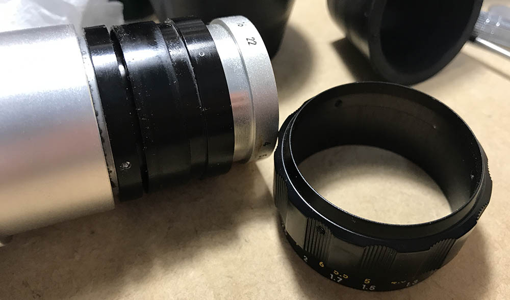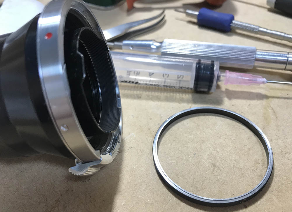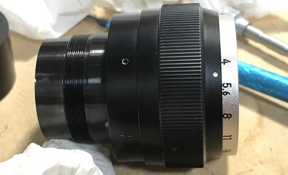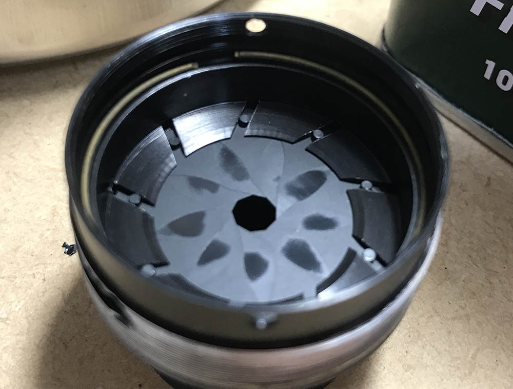 I cleaned each blade carefully, wiping them with naphtha to remove oil and rust deposits. Putting them back can be a pain but that’s something that I’m used to after repairing rangefinder lenses for years. I you want to see how I repair preset-type irises, read my article on how to service these.