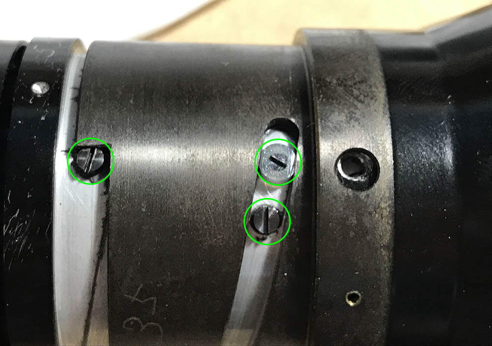 Extracting these will enable you to remove the aperture ring. Your drivers should fit the heads perfectly or you risk damaging the surrounding metal.