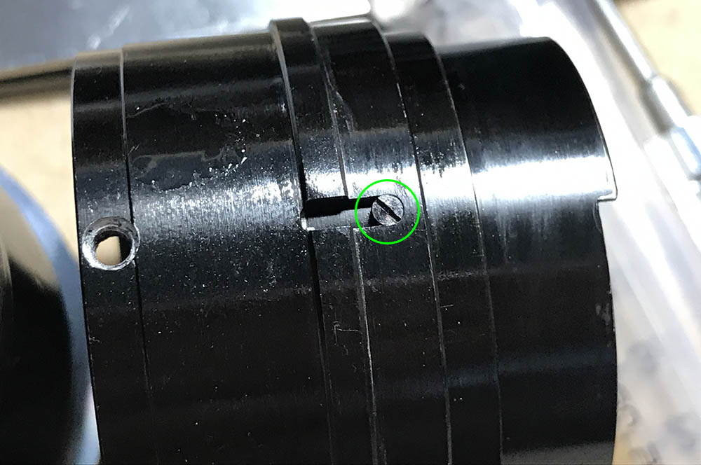 I could’ve done this earlier but the thread was so tight that I only got this off at this point. Removing this collar enables you to remove the objective block as it’s the only thing securing it.