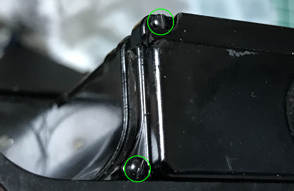 These screws secure the baffle. Apply MEK to them to soften their seals, use drivers that fit perfectly to remove these. Do not forget to note which screw should go to which hole so you’ll know how to put them back again later.