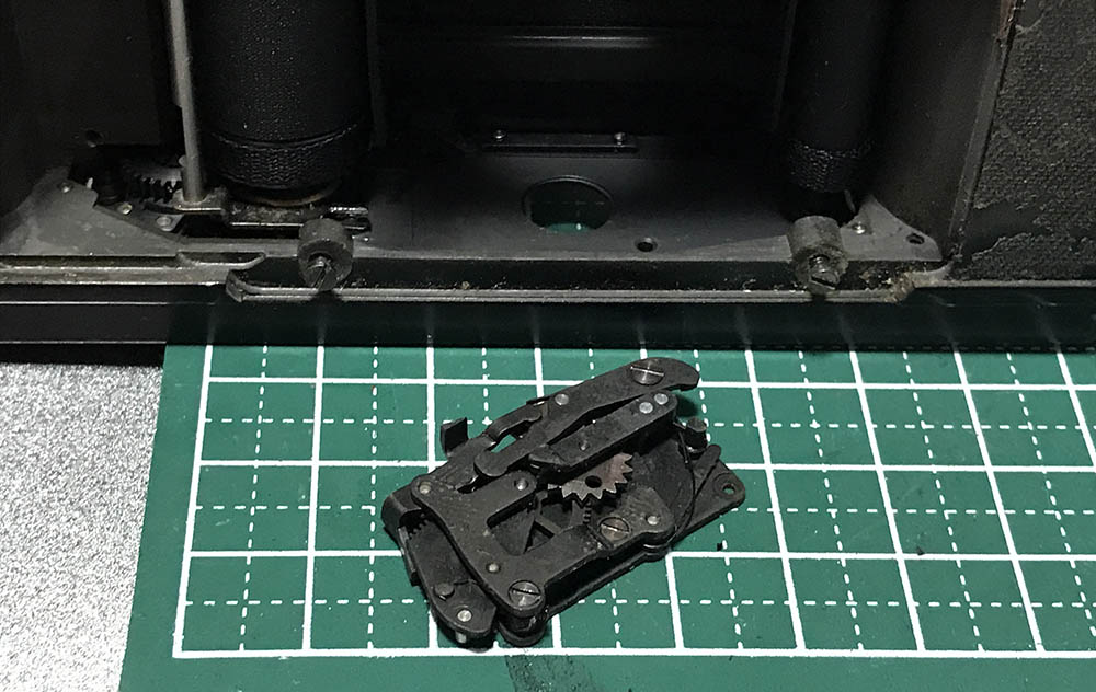 Remove the bottom cover to reveal the mechanisms underneath the chassis like the adjusters for the shutter’s tensioners and the shutter brakes. Put the cover aside and you can work on the mechanisms here.