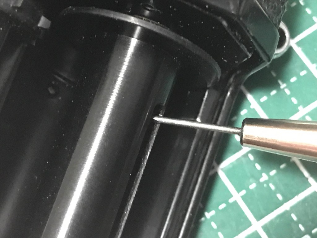 Carefully pull the shaft and clean its hole. Never over-tighten its screw or it won’t turn properly, you only want that set screw to prevent this shaft from popping-out of its hole.