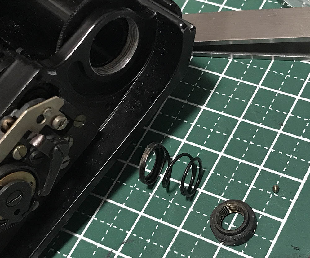 This is how the nut looks like. The spring suspends the spool in-place. You’ll see the small set screw beside the nut, don’t lose this little screw.