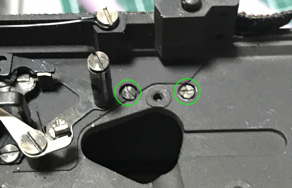 The retarder is secured by these screws. Soften their seals with MEK and it should be an easy job to extract these. The screw closest to the front can be adjusted, you move the retarder to its optimal position and then you tighten that screw to lock the retarder into position.