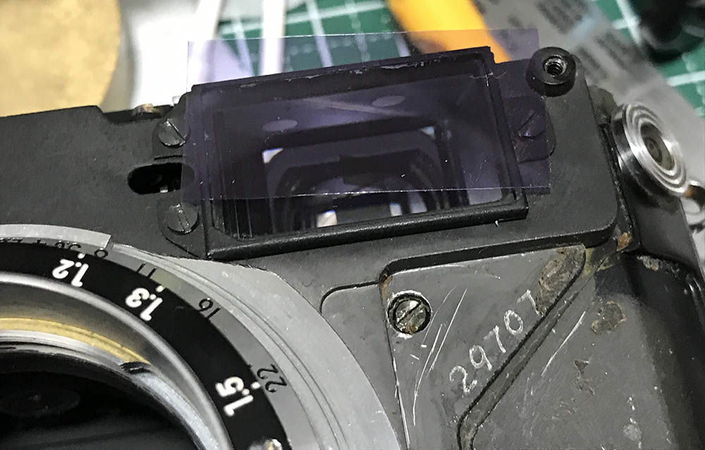One nice touch is to add a film over the viewfinder window. This will make the viewfinder a bit dimmer, making it easier to see the rangefinder patch. I learned this trick from my friend Jon Mitchell, I was supposed to cut a piece of colored filter to replace the original window protector of my Nikon S2 but I learned about this trick from him and that saved me a lot of time. It works, I can now see the patch better. Some people use colored-glass strips, I saw a person who did this and that made me curious but this trick is much better.