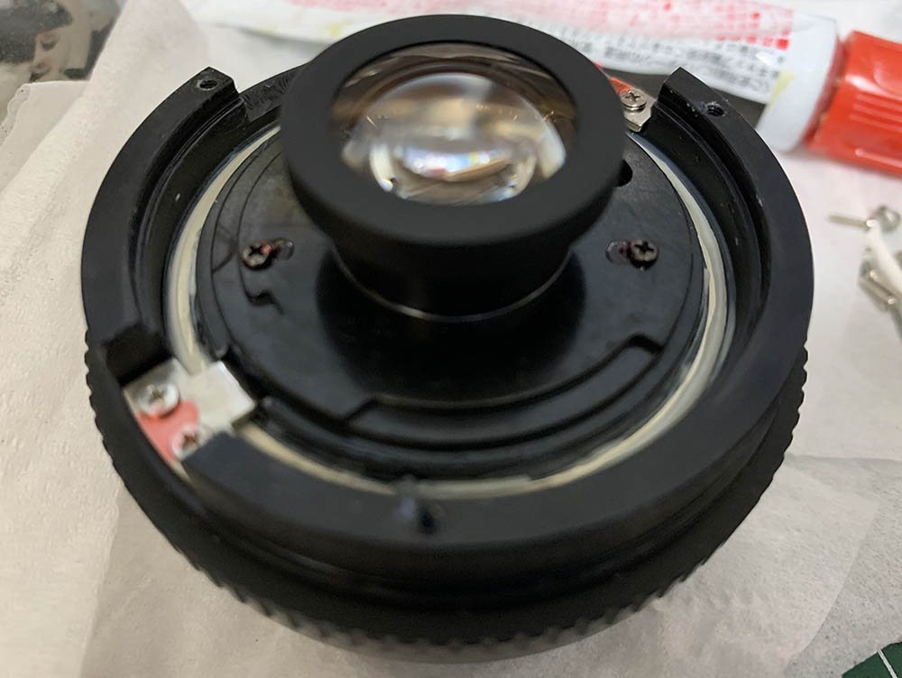 I lubricated the helicoids with grease that is more on the stiff-side, that will be beneficial because the focus-throw of this lens is so short. Only use ones that are either silicon or lithium-based since there’s a lot of metal-to-plastic threads. Only apply a thin film, that should be enough. Applying too much will result in the gloop that you just saw earlier. That excess grease can and will migrate to the iris mechanism and cause more problems later.