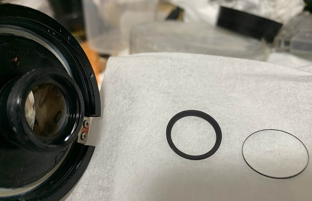 Underneath it is a spacer. Don’t forget to note which side faces the front just like with the 4th element. Putting this back facing the wrong way will crack the 4th element when you tighter the rear element’s retainer.