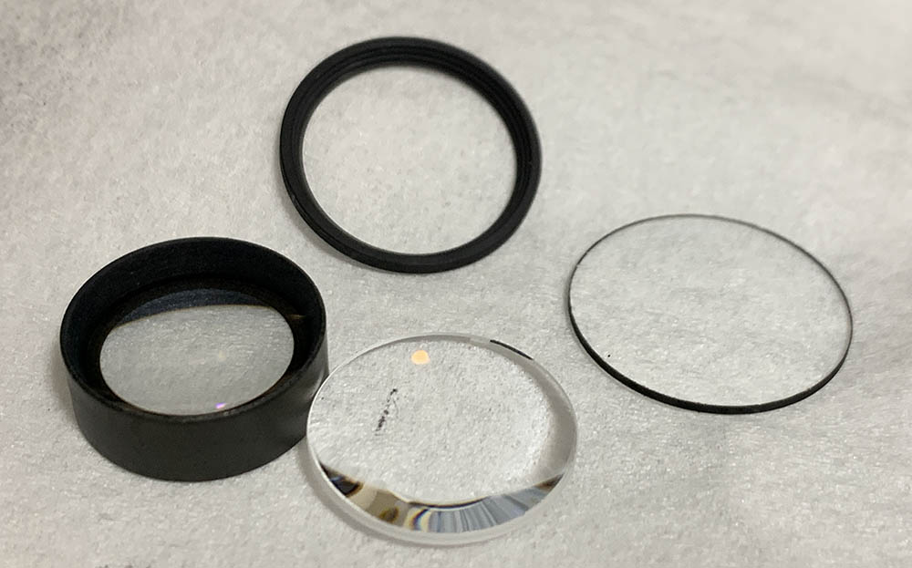 Extract the 4th element with lens sucker. Use a permanent marker to mark its leading edge so you’ll know which side should be facing the front.