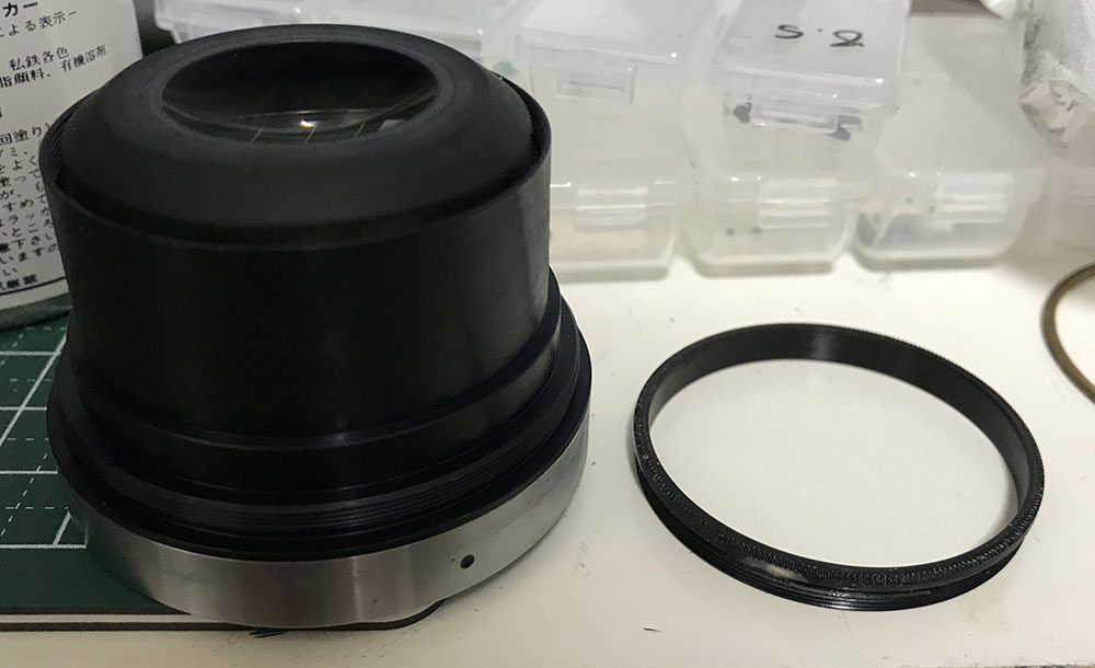 Here it is now. Do note that this job would have been a lot easier if only the housing of the objective wasn’t stuck. I had to be extra-careful with this, it’s easy to scratch the rear element.
