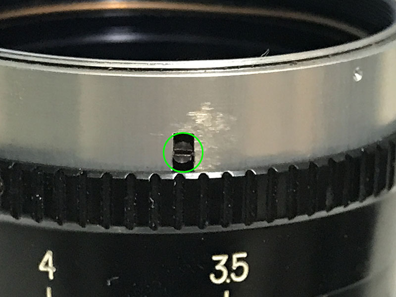 Carefully extract this screw, it’s a pin that links the aperture ring to the iris mechanism inside. It allows the aperture ring to control the iris. Before you remove it, note its height first since you’ll need to put this back again in the right way and it should sit exactly the way it did.