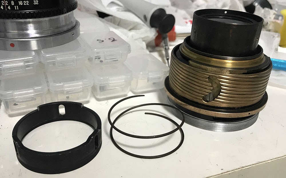 The iris mechanism is being held by this brass ring. Pick on it with a needle and you can safely remove it.