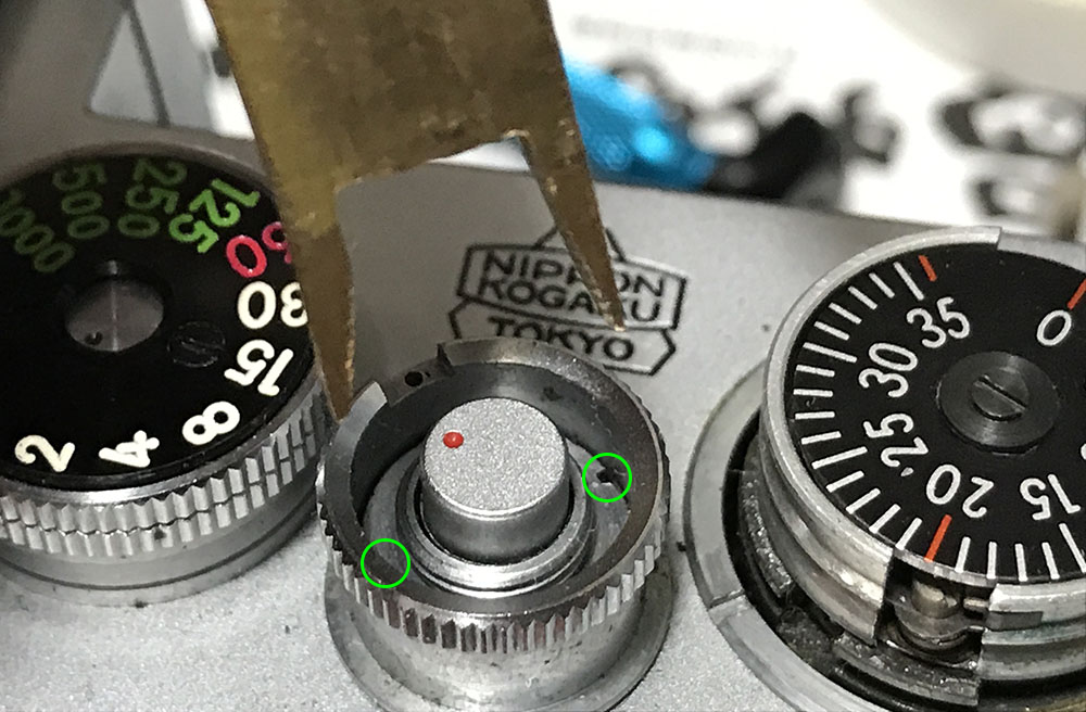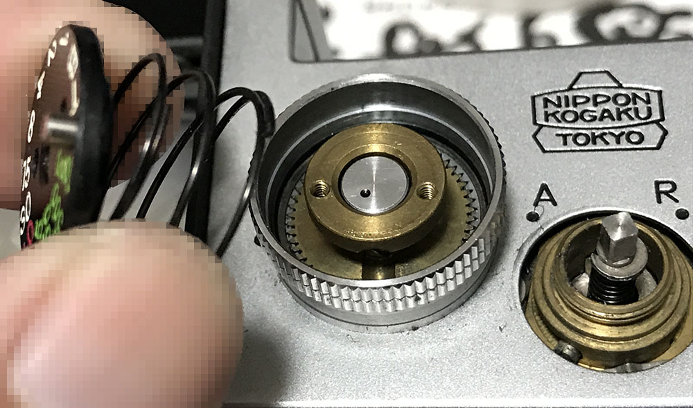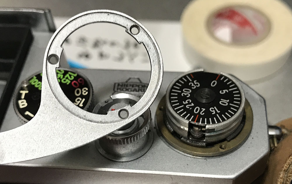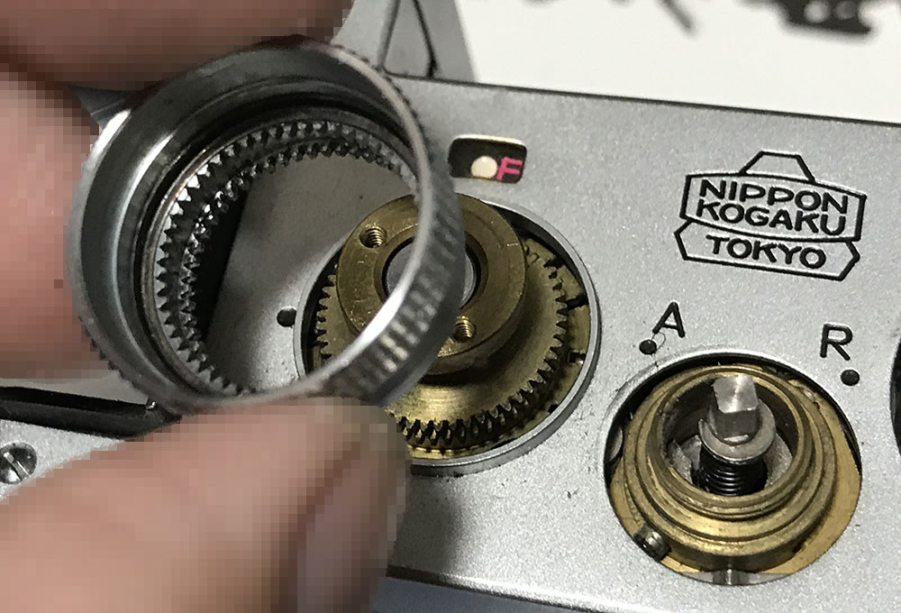 Do the same for the film-advance lever ring, don’t forget to note which side should be facing up.