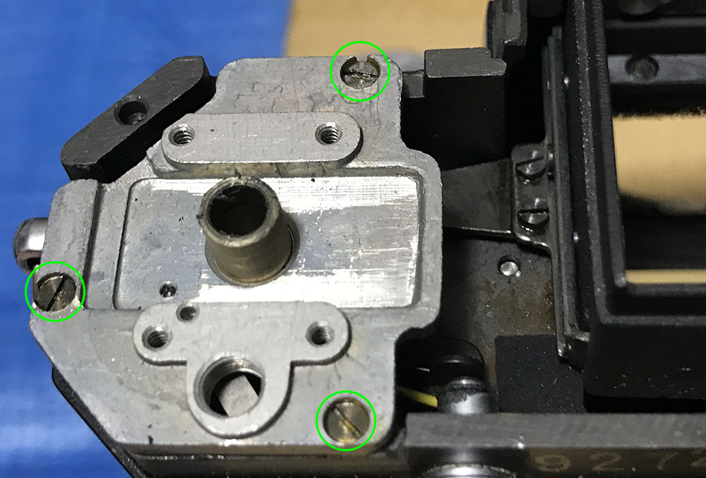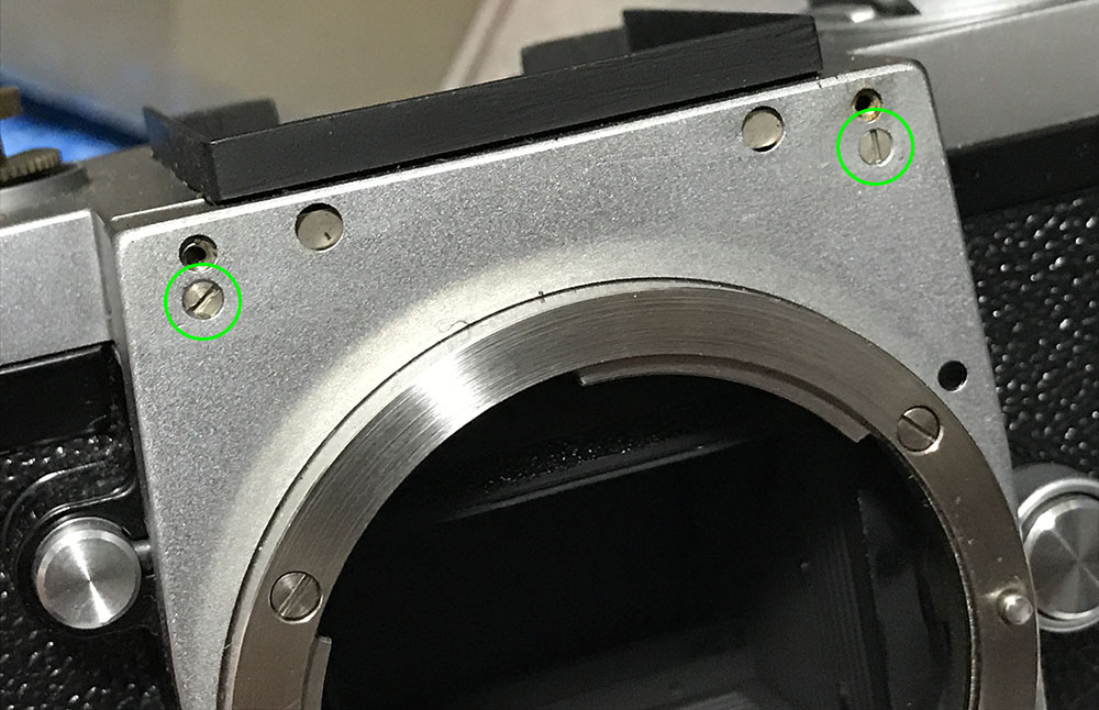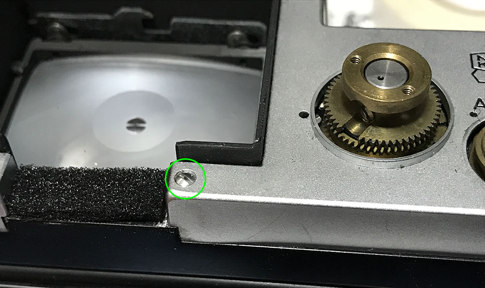 Remove the film-counter guard and re-tighten its screws so they’re safe and won’t accidentally get lost.