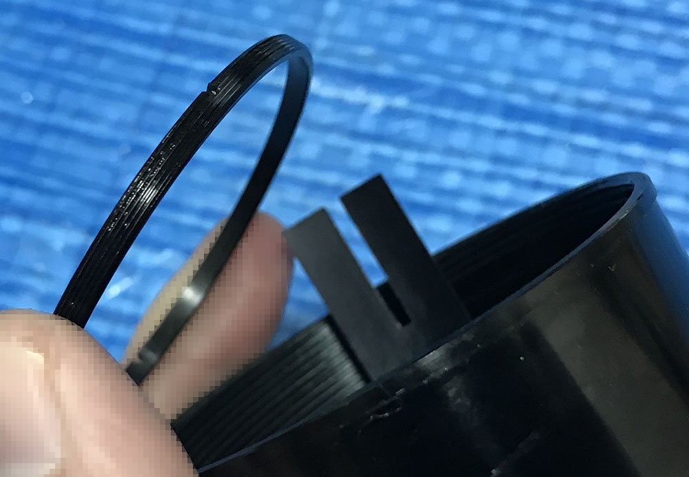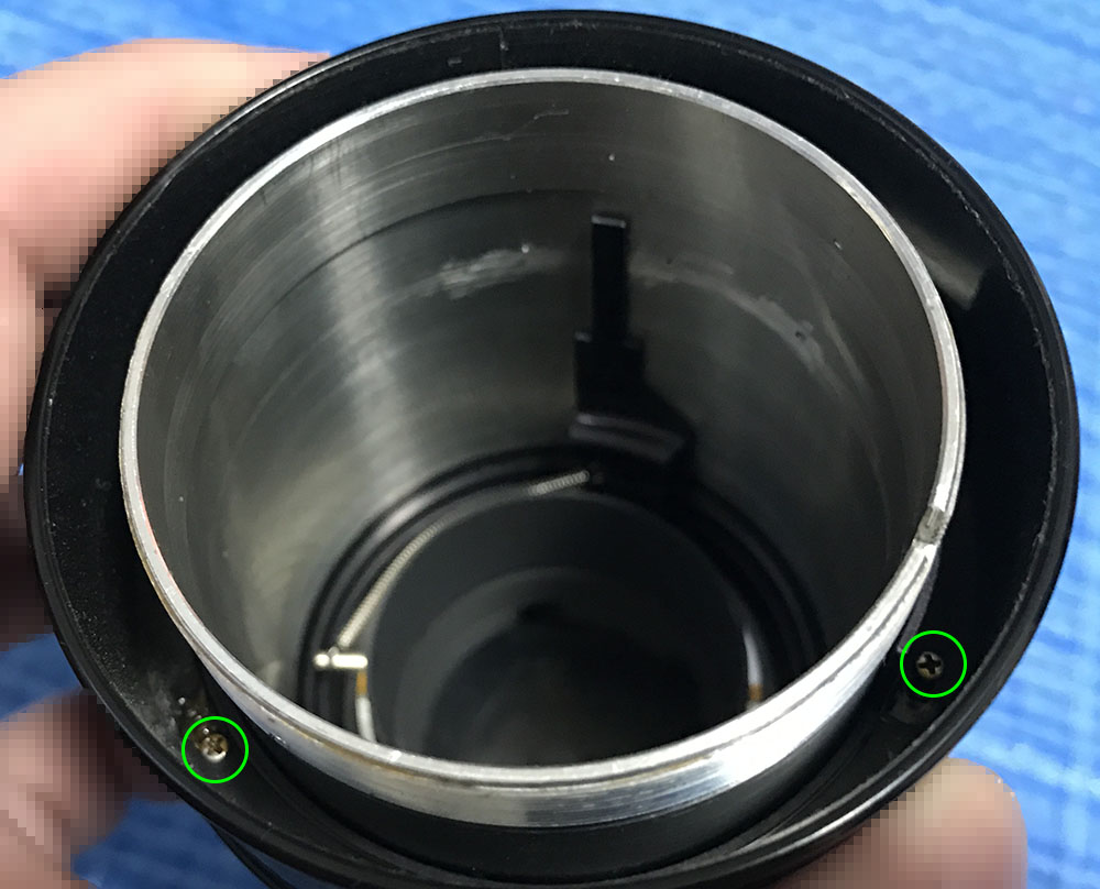 The helicoid stop is secured by these. The helicoid stop constrains the range of the helicoids so they won’t turn beyond the focusing range. Extract these so you can remove it but don’t forget to note which side should be facing up because you’ll have to put this back the right way later.