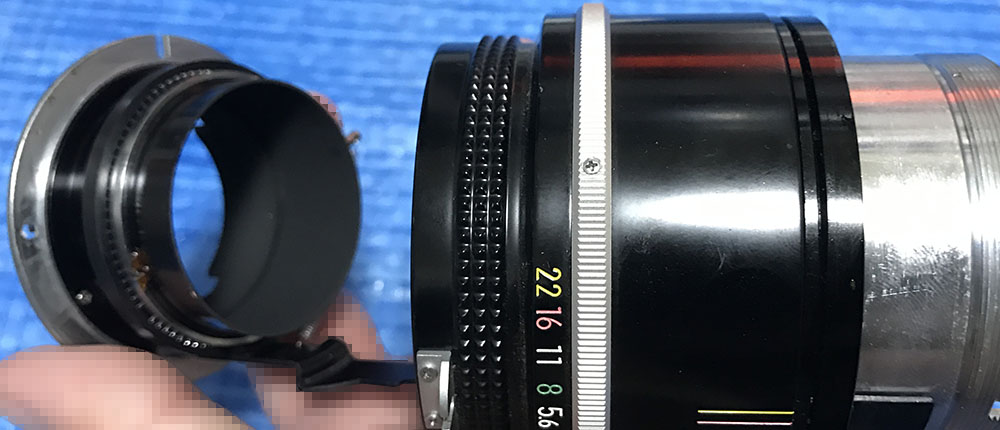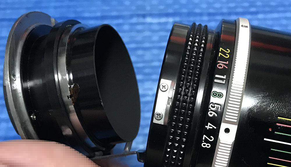 Clean everything really well before you put things back together. The iris is clean so I did’t have to service it. If your lens has the oily iris problem, read my Nikkor-Q 135mm f/2.8 Auto article and that should help guide you. It has a similar-looking iris mechanism so that shouldn’t be a problem.