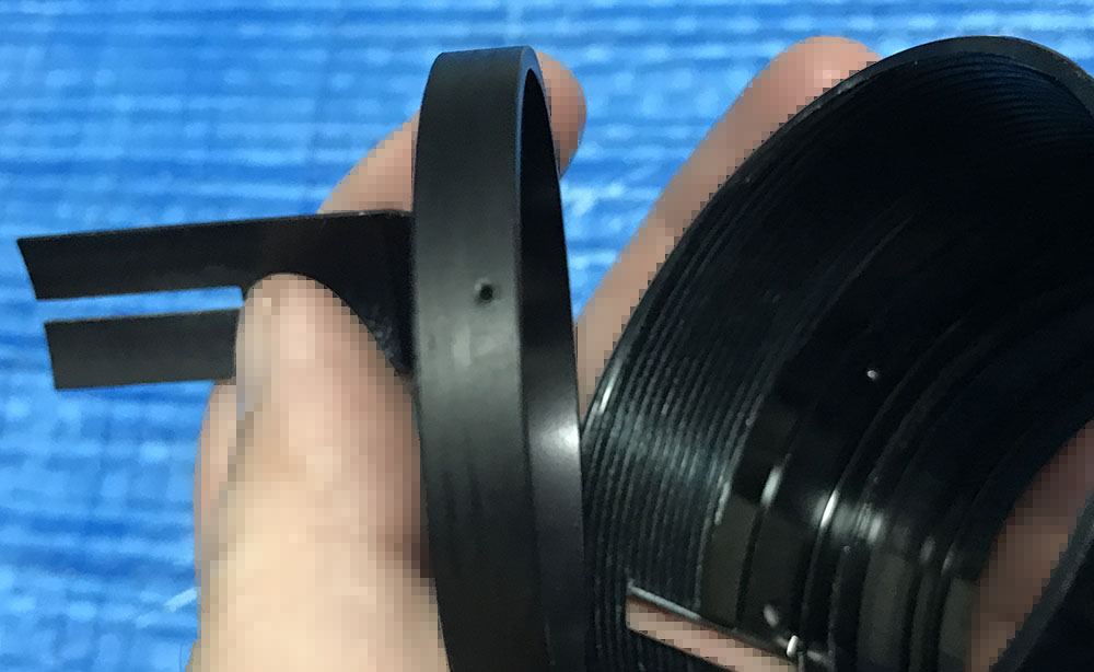 Locate and extract this, use the hole in the hood to access it. This secures the front ring, we won’t remove it now but it’s a good time to apply alcohol and acetone to the thread of the front ring to help soften the seal, by the time it’s soft you’re at the step where you need to remove it.