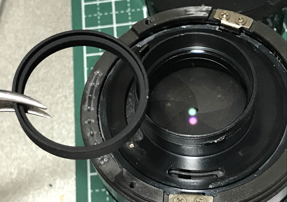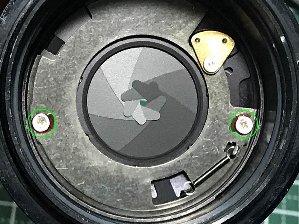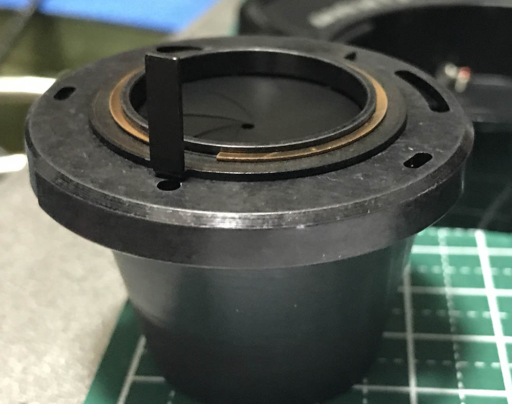 Before you remove the iris mechanism, make small marks so you will know how to align it back again later. It’s adjusted accurately at the factory, if you get this wrong then you won’t get accurate exposures at all.