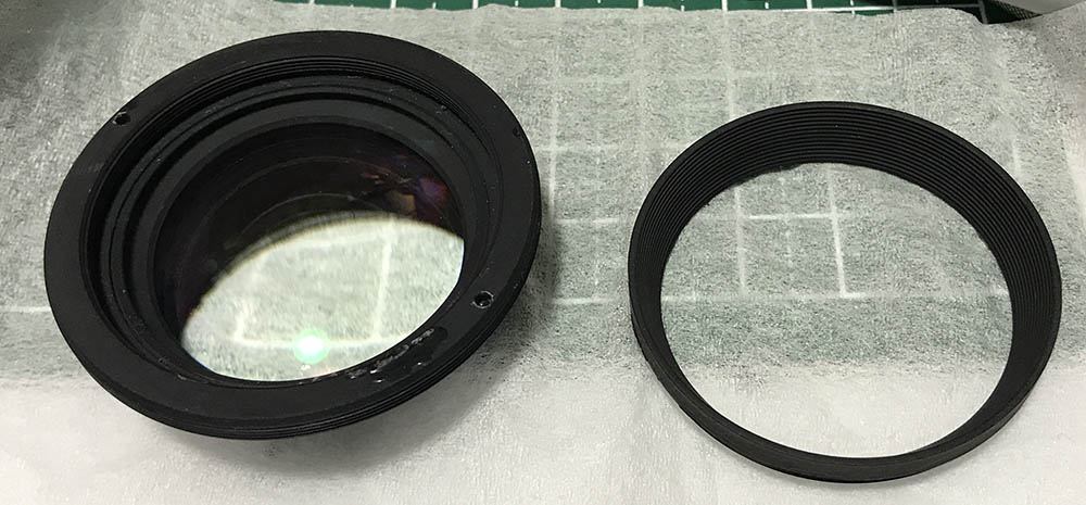 Unscrew the front elements assembly and store it in a safe place while you work with the rest of the lens.