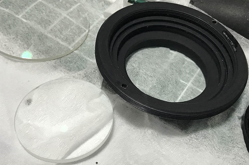 Since this lens doesn’t have a separate housing for the objective we’ll have to separate the elements while we service the main barrel. It’s not difficult and it’s quite a common procedure for newer lenses. You’ll need special openers to access some of the elements here such as rubber cups and lens spanners.