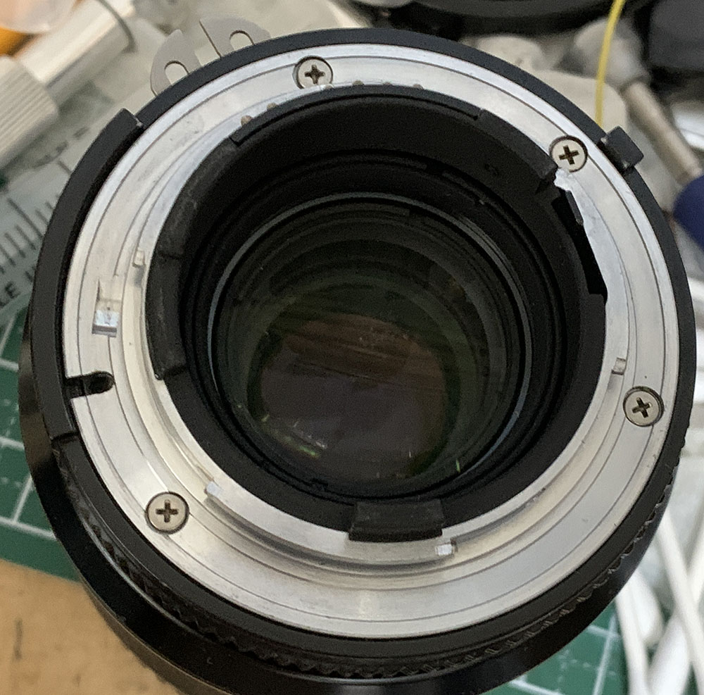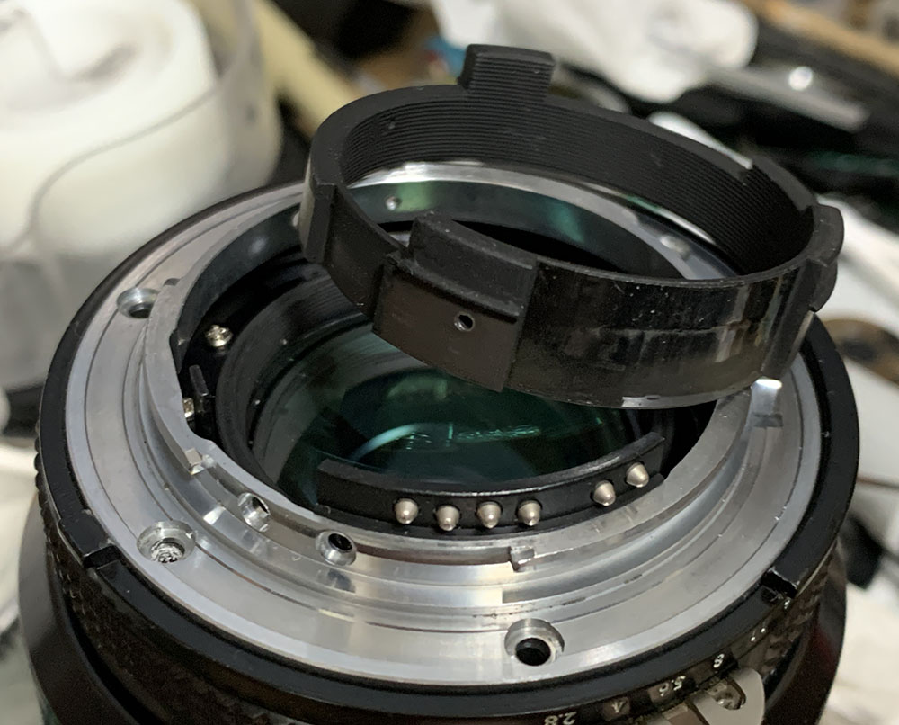 Like all Nikkors with electronic contacts, remove the baffle first before you remove the bayonet mount or you’ll damage the ribbon or contact block. It is important that you note which screw should be placed at which hole, the one that’s connected to the contact block is smaller than the rest. Leave the tiny screw at the 6:00 position, that’s to prevent you for over-turning this so you won’t turn it beyond what’s needed and destroy your camera.