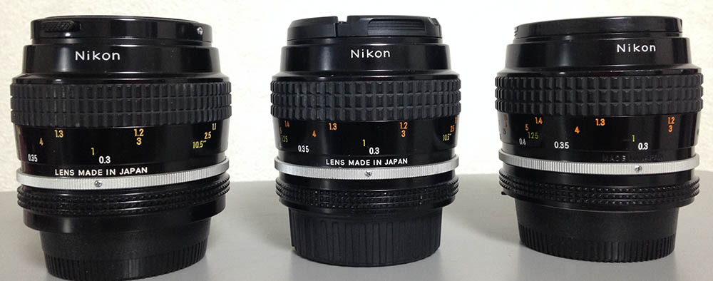 These are the major variations of this series. The left-most lens is the oldest, the Micro-Nikkor 55mm f/3.5K (New-Nikkor). It set the look for the rest of the production. The one at the middle is the Micro-Nikkor 55mm f/3.5 Ai, this is basically just a minor update. There are a few differences internally but all of which are merely minor revisions to make production easier. The one at the right is the later version of the Micro-Nikkor 55mm f/3.5 Ai, this one has a different marking for use with a different extension tube. The rarest is the one at the center, with an estimated production of 8,600 or so samples. This means nothing to the casual user but collectors fuss about these details.