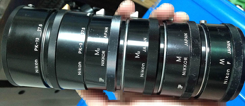 These are Nikon’s extension tubes and they were sold with Micro-Nikkors of the 55mm class. These will allow the lens to get to 1:1 magnification, its use is almost-exclusive to this lens family. With it, you’re able to actuate the iris so you could view through-the-lens with the iris wide-open and the camera will actuate the iris just-before exposure time. This allows you to view your scene better. The downside of using this is you’re going to get a darker view since you’re effectively reducing the light that reaches the film or sensor. If you’re focusing at or beyond 1:1 magnification, the view could be so dark it is difficult to focus without the aid of additional light. I won’t recommend to add anything more with it to get higher magnification as the barrel’s tip will touch your subject.