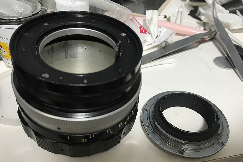Clean everything very well before you put things back. If your lens needs to be disinfected from fungus, read my article on how to remove fungus. Don’t use the chemicals undiluted or you will damage the surface of the elements. If you still haven’t figured out how to work with the iris, read my article on the New-Nikkor 85mm f/1.8 and see if that helps.