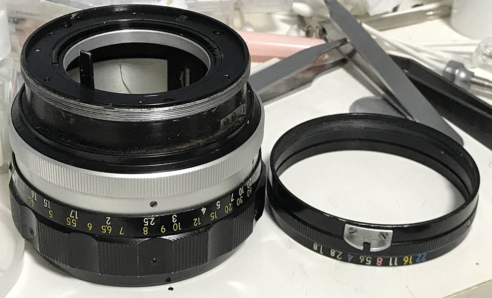 This is an enjoyable lens to service. It’s not difficult at all and quite frankly I wouldn’t be interested in it if not for its early serial number. I have repaired a lot of Nikkors that this is peanuts for me at this point so it didn’t take me a long time to clean this properly. This is not a project for beginners, practice on cheaper lenses first before you work on this.
