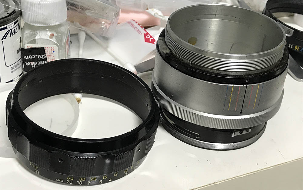 Separate the central helicoid from the outer one and never forget to make a mark on where they parted since this is also where they should mesh. If you haven’t read my article on how to work with helicoids, read that now. People forget to mark this and they end up wasting a lot of time and giving up, this is why many lenses do not function properly. Read my article and follow my instructions so you won’t get frustrated.
