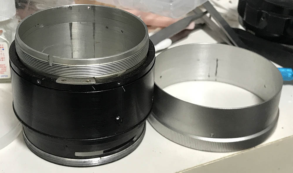 Reassembling everything is simple, just back-track until you get everything back. See how clean it is now? The engraved details now look bright again. Putting the objective back into the barrel can be frustrating, the best way to do it for this lens is to leave the bayonet off and slowly place the objective to its proper place while making sure that all of the pins connect to their forks. It may take you several tries but you’ll eventually get it.