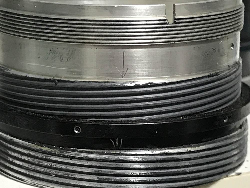 Collapse the helicoid and make a diagonal mark, reproducing this when it’s time to reassemble the barrel means that you got it all correct. If it’s off, you will have to guess how the helicoids should mesh and waste a lot of time.