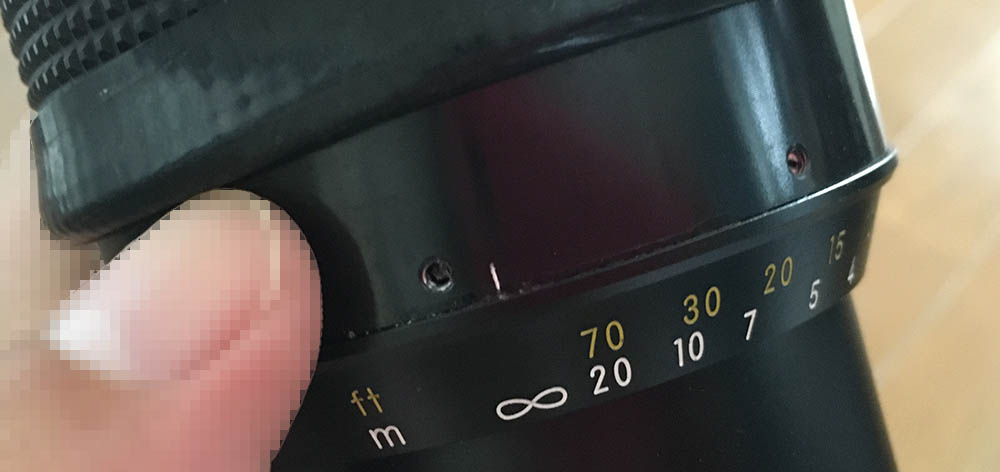 It has a beautiful and useful depth-of-field scale engraved on it. Use a brush to scrub this well but be careful not to peel the paint off.