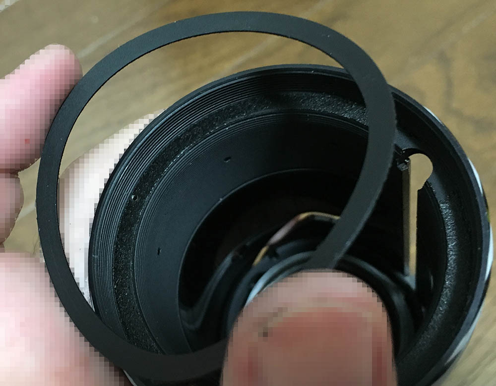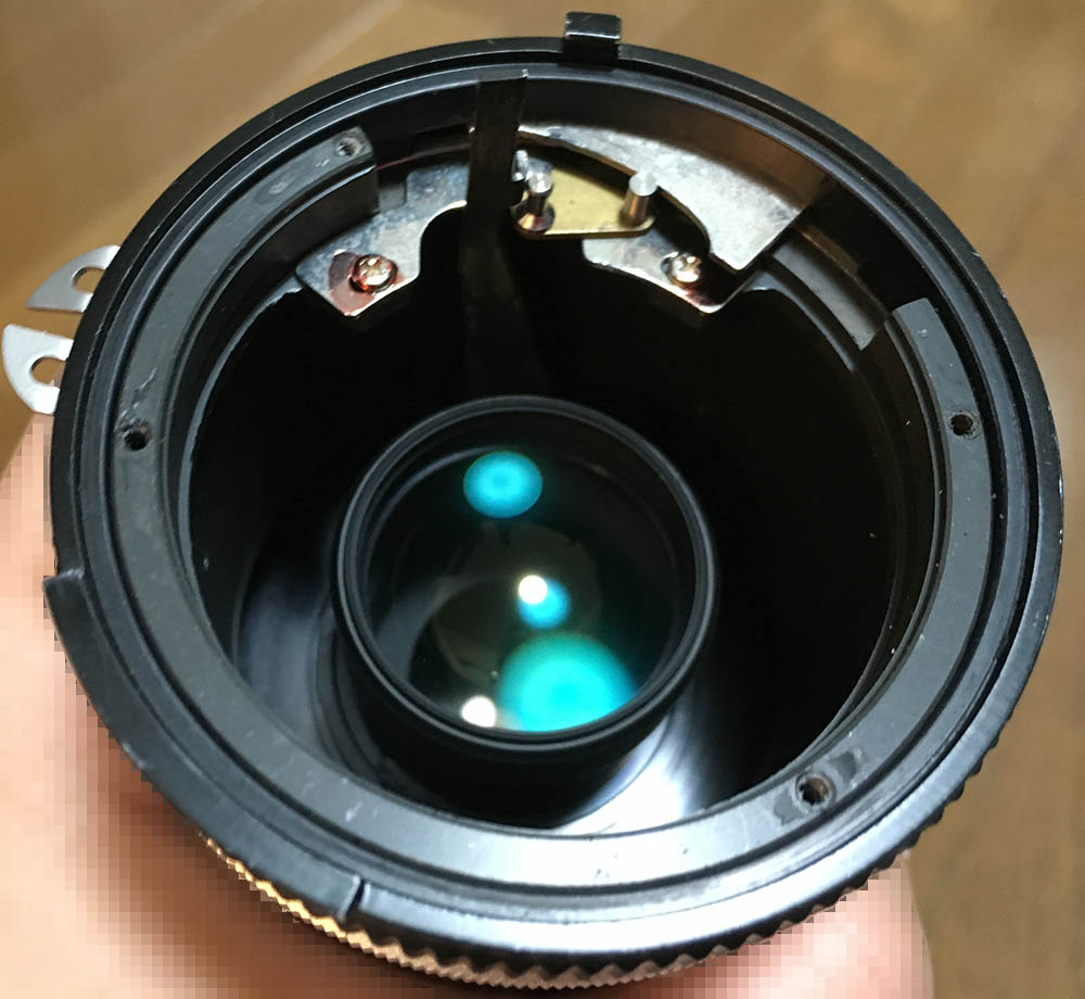 Carefully remove this assembly. It houses the iris mechanism and other lens elements.