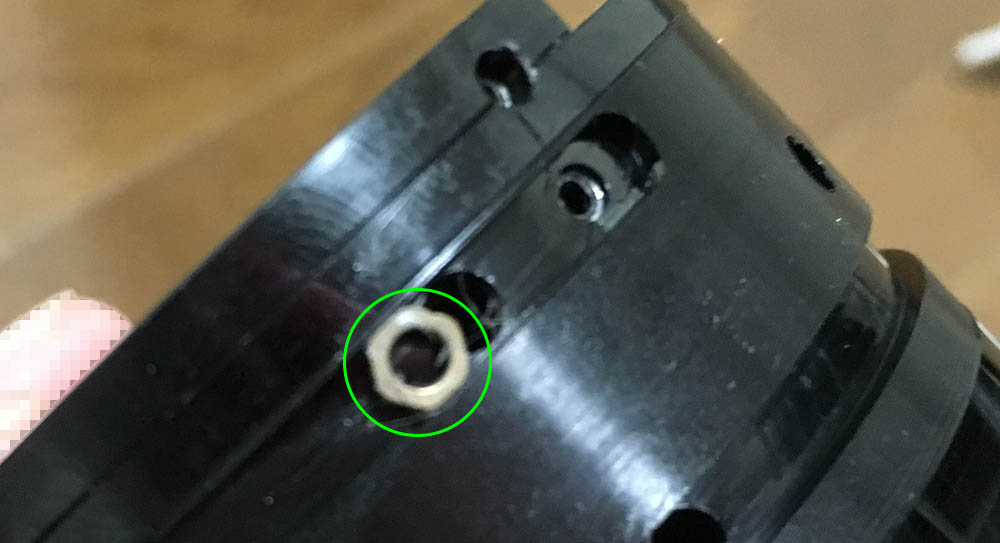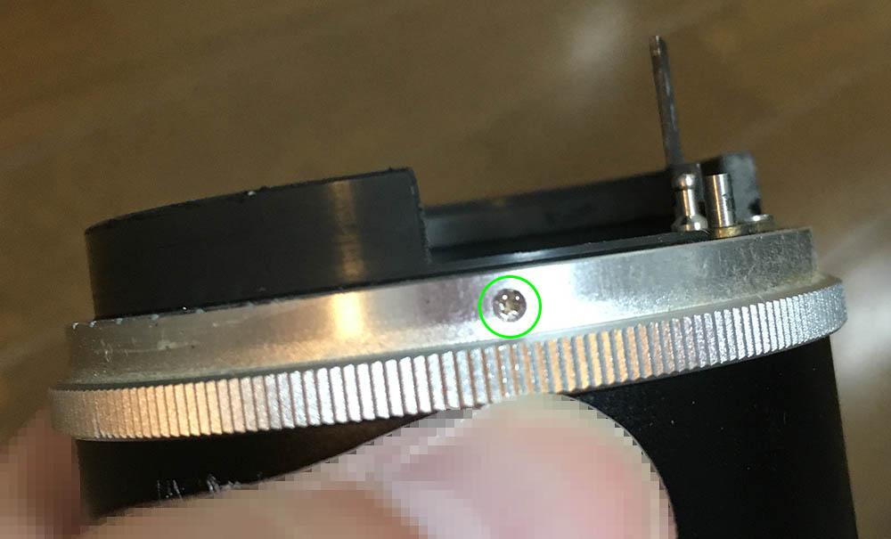 These screws secure the whole barrel to the base plate. You loosen these to adjust the rear-focus of the lens. The brass shims help but it’s sometimes not going to be enough and micro-adjustments will still have to be done.