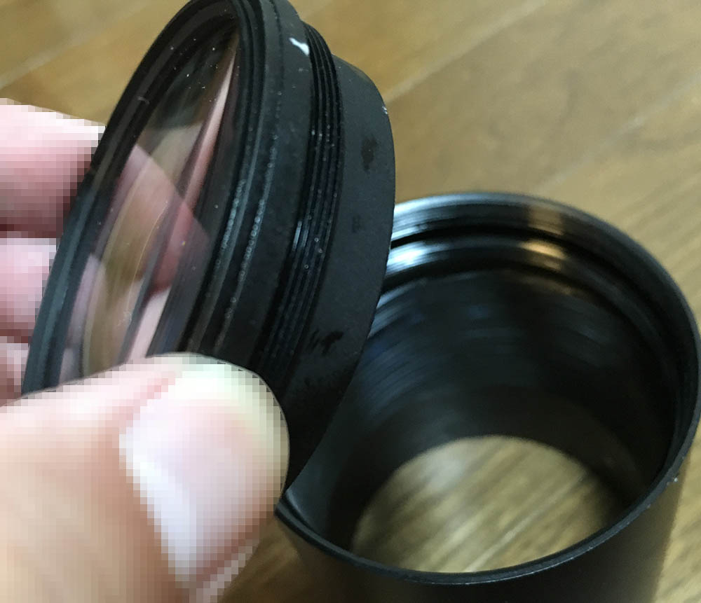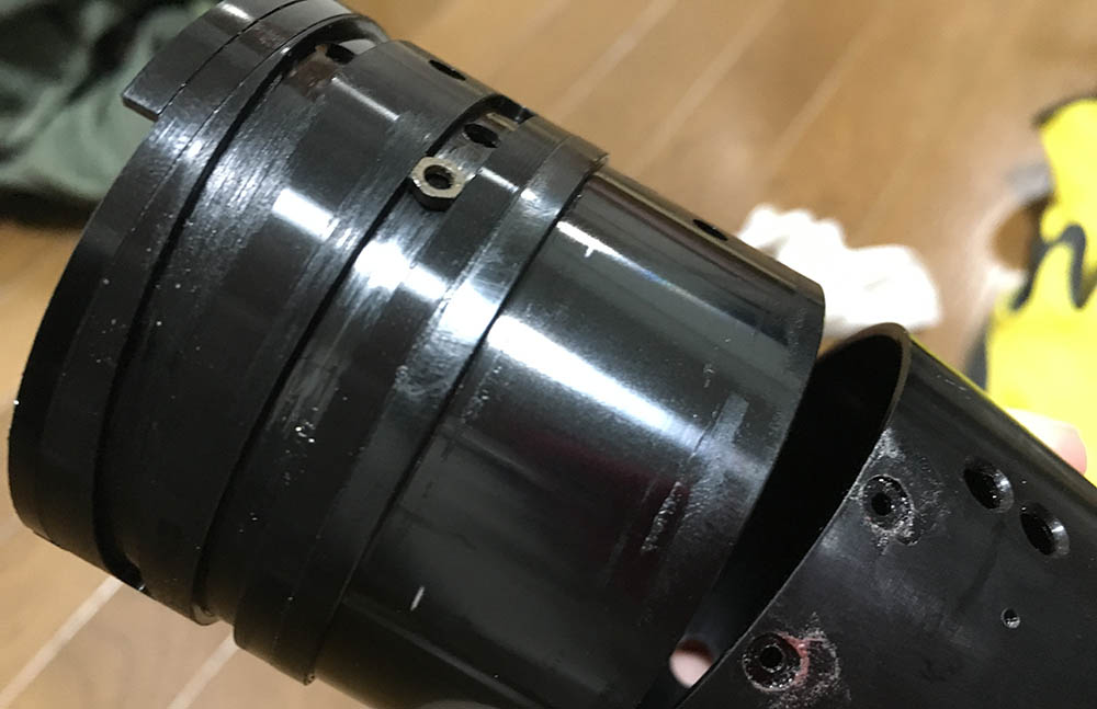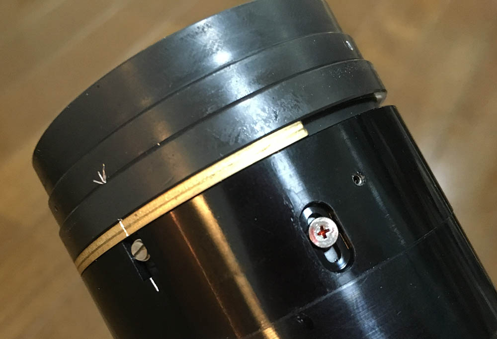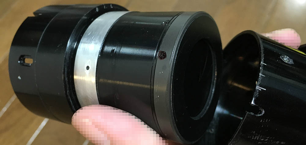 Carefully separate the front barrel from the rest of the main barrel and do not forget to note where it separated since this is also where it should mate. Many people forget this and end up getting frustrated trying to guess where these should mesh. To prevent this from happening to you, read my article on how to work with helicoids and follow it.