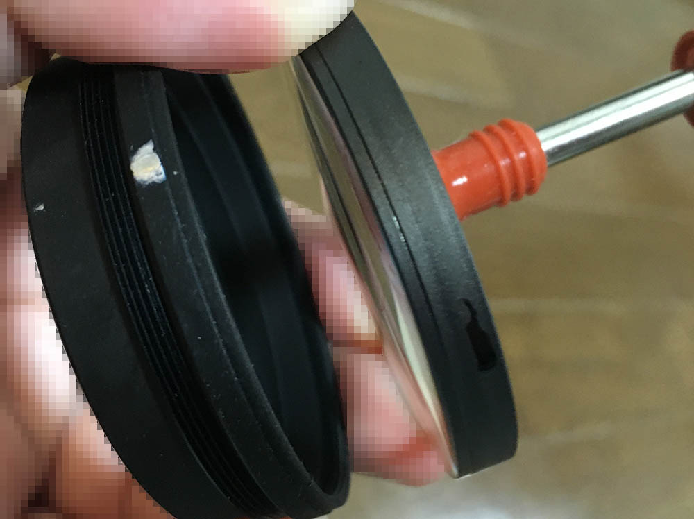 Place a drop of alcohol into this hole to soften the seal of the front ring.