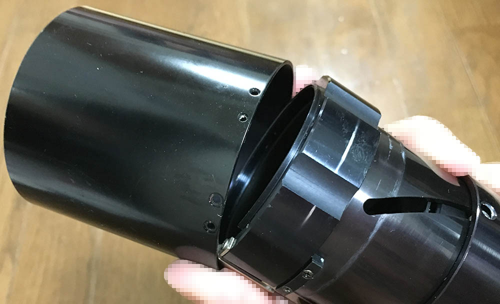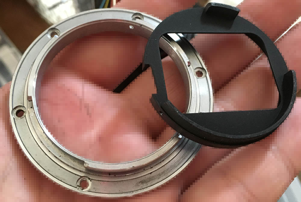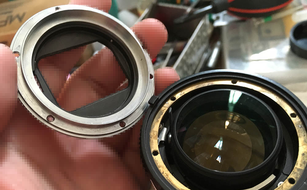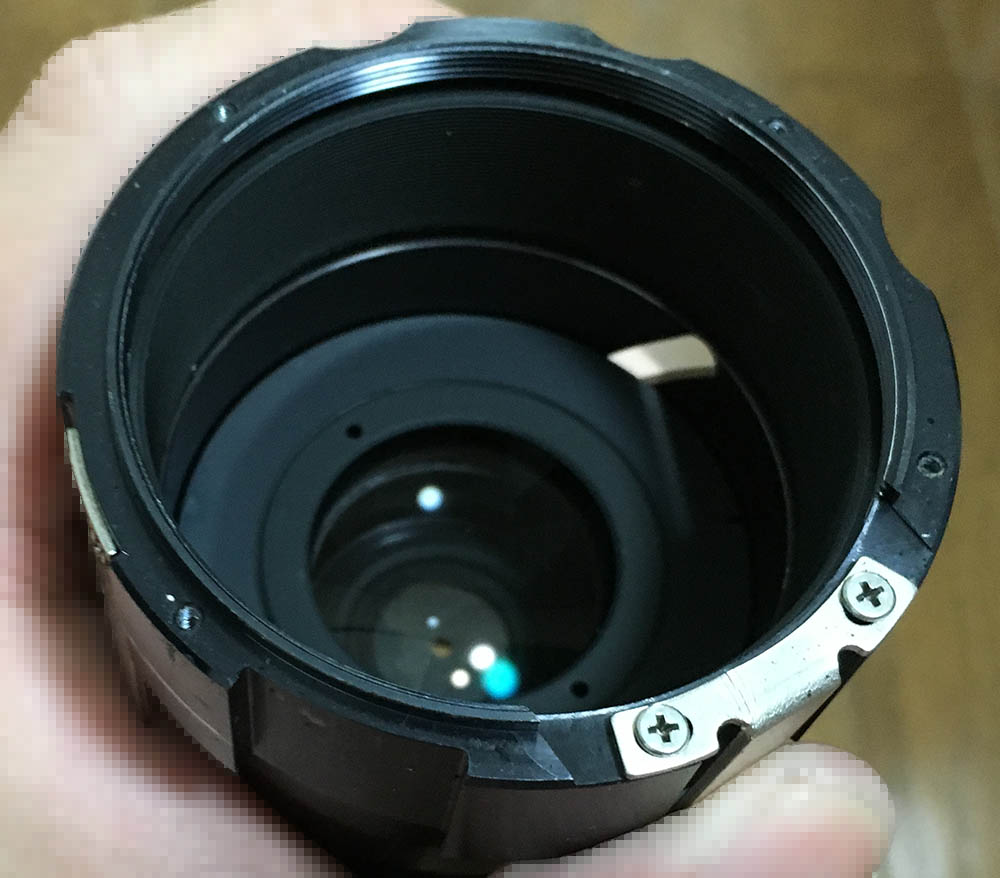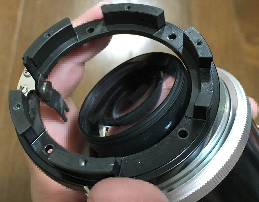 The optics are easy to dismantle since their construction is similar to lenses of the same vintage. Avoid dismantling the rear optics assembly, it’s delicate and putting the elements back incorrectly-spaced will result in performance issues. You can read my article on the Zoom-Nikkor 80-200mm f/4.5 Auto for more hints, its construction is similar to this in many ways so you could use it to get ideas on how to open some of the housings.