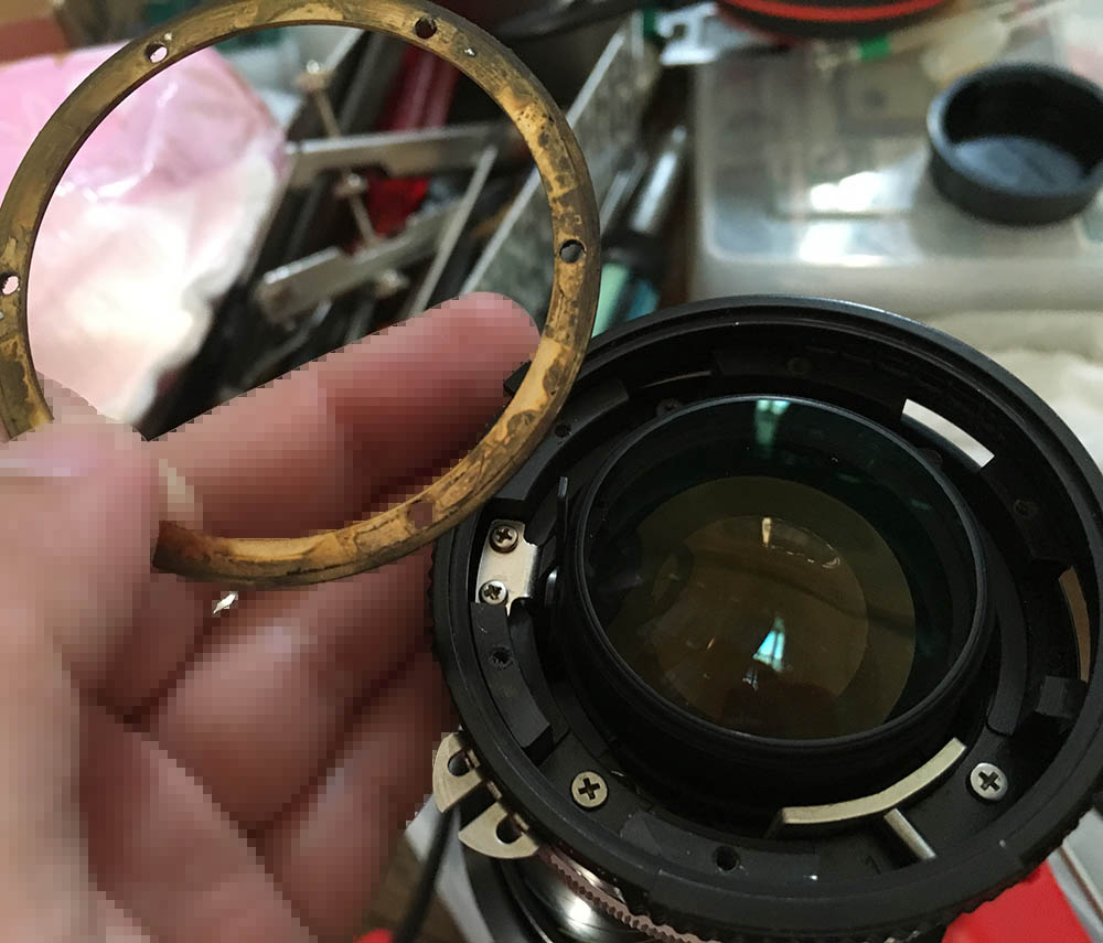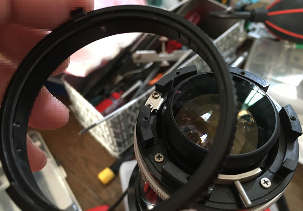 Carefully remove these shims and clean them well. These are used to adjust the rear-focus of the lens so don’t lose any of these.