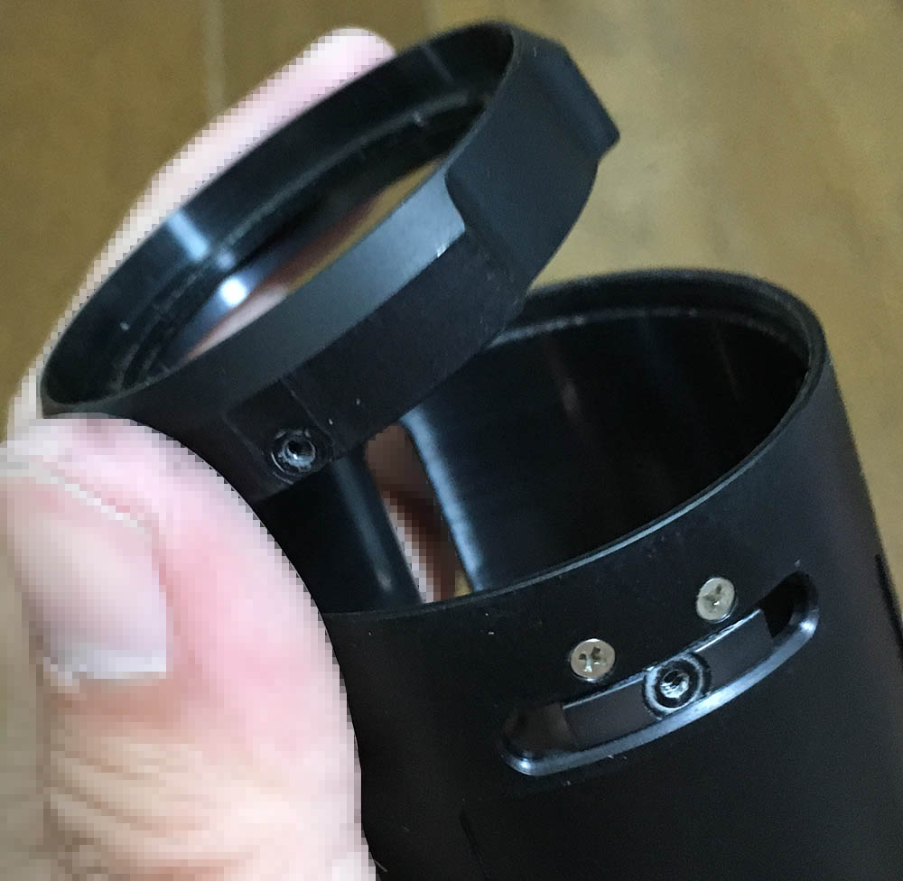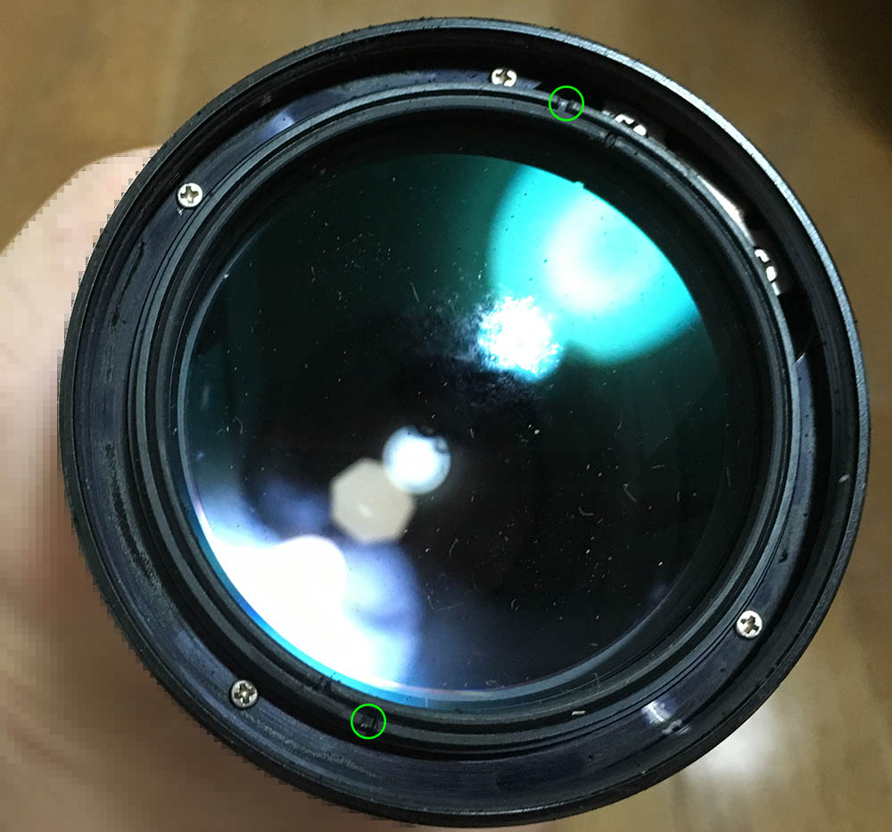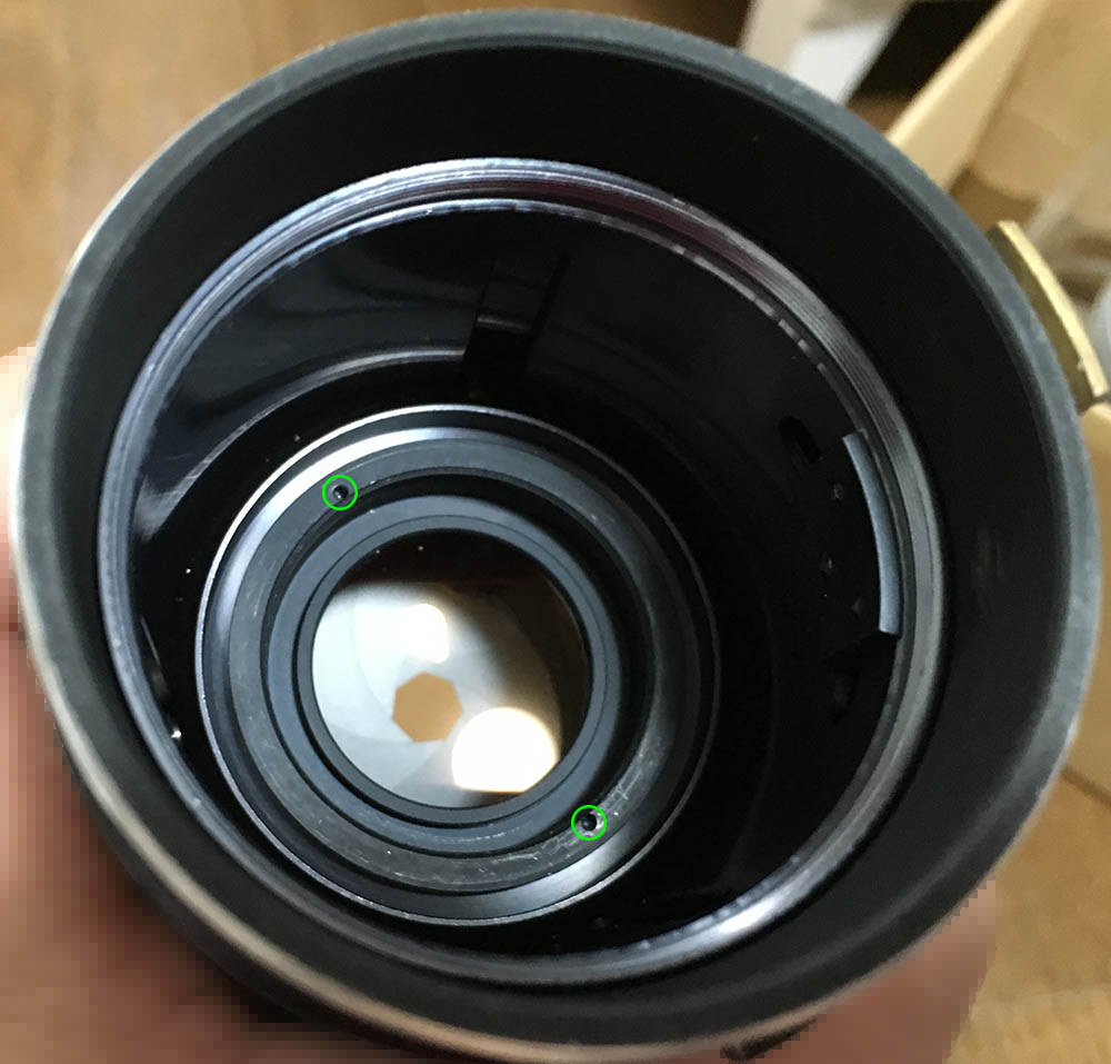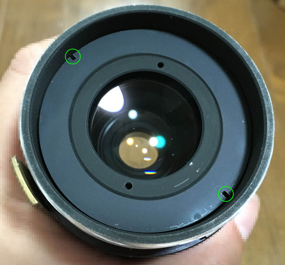 Extract the front elements assembly with a lens spanner. Make sure you are looking at the correct sets of slots, you want to use the outer ones.