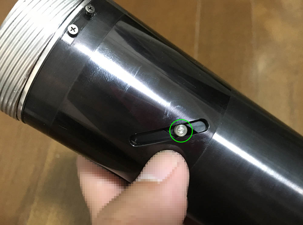 Extract this to unscrew the grip. Use a screwdriver that fits it perfectly, that fluted pattern of the grip is soft and easily-damaged if your screwdriver is a bit larger than the head. A smaller one will certainly strip the slot.